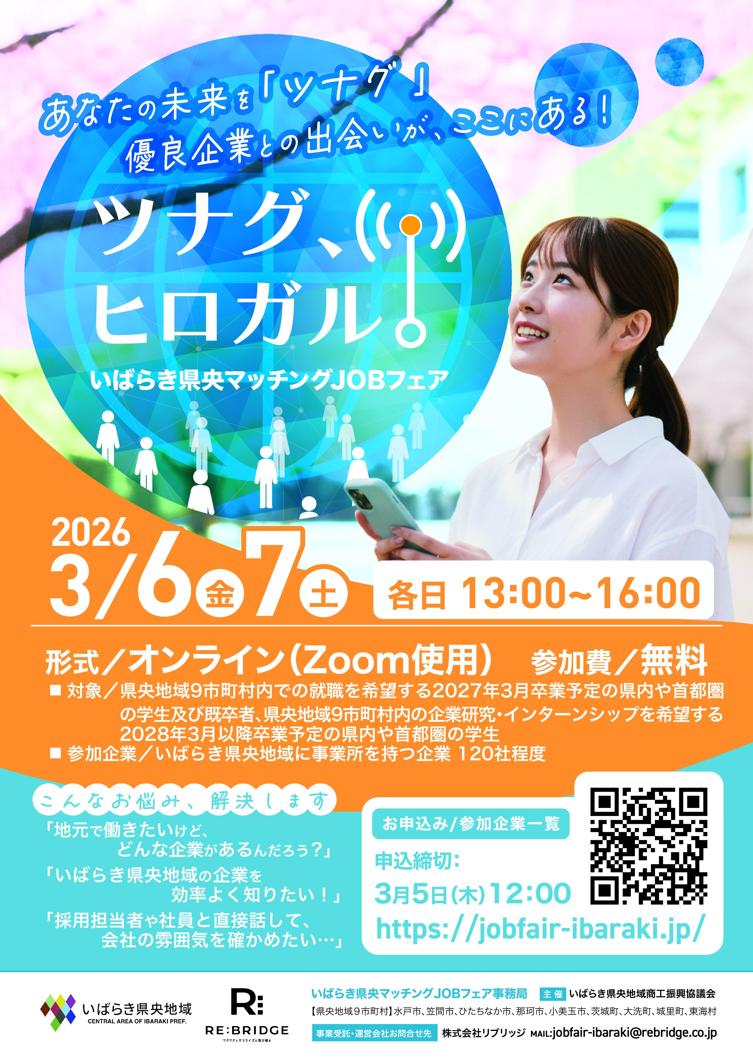 2026年3月6日(金)・7日(土)に『いばらき県央マッチングJOBフェア』を開催します。いばらき県央地域の採用意欲の高い企業約100社が参加する説明会です。